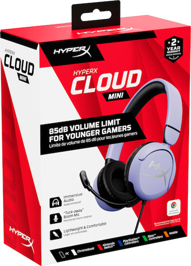 HyperX Cloud Mini On Ear Gaming Headset με σύνδεση 3.5mm Lavender for Nintendo Switch / PC / PS4 / PS5 / XBOX