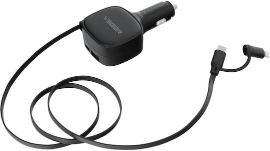 Ο φορτιστής αναπτήρα αυτοκινήτου Veger 84W είναι η απόλυτη λύση για όσους θέλουν υπερ-γρήγορη και ασφαλή φόρτιση στο αυτοκίνητο, χωρίς καλώδια να μπλέκονται και χωρίς περιορισμούς συμβατότητας. Συνδυάζει ενσωματωμένο καλώδιο 2-σε-1 (Lightning & USB-C) με προηγμένες τεχνολογίες φόρτισης, καλύπτοντας όλες τις σύγχρονες συσκευές.