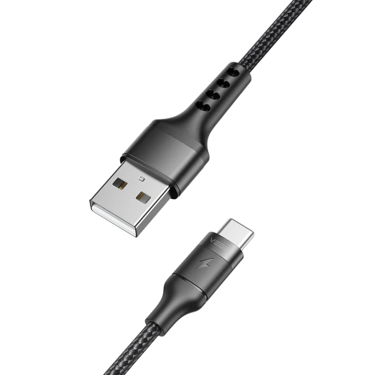 VEGER AC03 – Braided USB 2.0 Cable USB-C male – USB-A male Μαύρο 1.2m