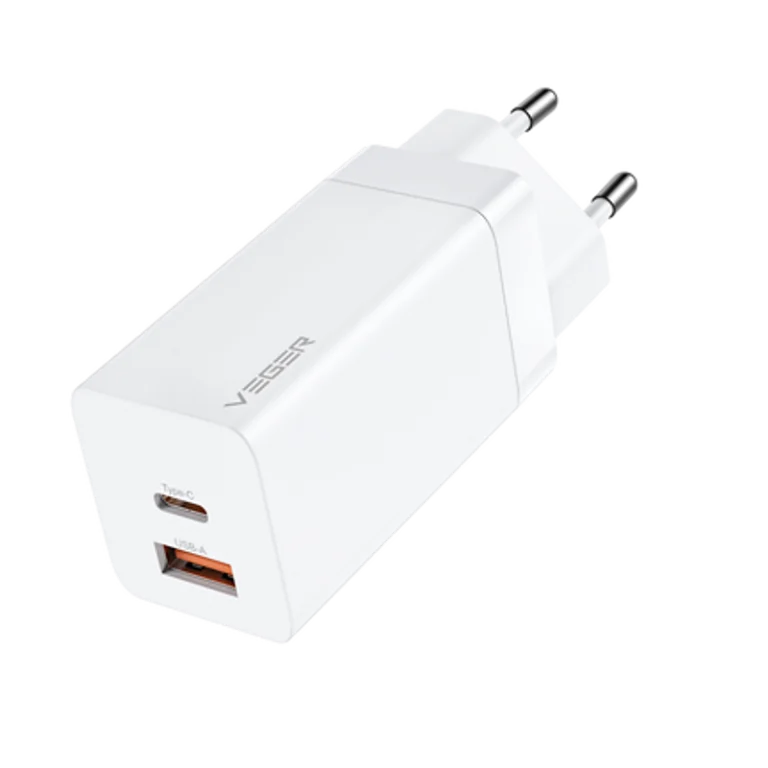 Veger CPD65E Φορτιστής Χωρίς Καλώδιο GaN με Θύρα USB-A και Θύρα USB-C 65W Power Delivery / Quick Charge 3.0 Λευκός